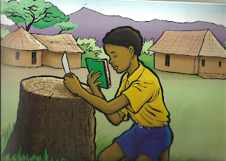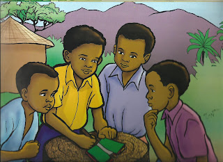 ( fig.1) MADUGU ao ver de longe a casa dos missionários, deu um grande suspiro. MADUGU sabia que na casa dos missionários tinham remédios, mas eles eram cristãos. E MADUGU disse para si mesmo: - Eu sou um mulçumano! Nós mulçumanos não devemos deixar que estes cristãos toquem em nós. Apesar disso MADUGU sabia que alguns amigos dele tinham ido até lá na casa dos missionários e tinham sido sarados. E pensou... - Aqueles missionários são como anjos aqui na terra.