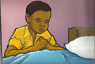 ( fig.4 ) MADUGU não esperou nem mais um minuto. Correu para o quarto que o missionário havia lhe dado, fechou a porta e se ajoelhou perto da cama. E orou assim: - Querido Jesus, estou pronto para recebê-lo agora. Por favor, venha e faça o meu coração ficar limpo. E por favor, deixe-me ser seu amigo. Quando ele subiu para a cama, estava muito feliz, quase não conseguiu dormir.