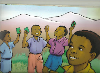 O missionário virou novamente a página, e esta era de um lindo vermelho. Logo em seguida levantou-se um menino e falou bem alto: - “O sangue de Jesus Cristo, nos purifica de todo o pecado.” I João 1:7 - Jesus morreu! Para purificar os nossos corações. Disse o missionário. De imediato, MADUGU pensou no dia em que foi morto um carneiro todo branquinho, em uma festa mulçumana em sua aldeia, que ele e os irmãos assistiram. Agora ele sabia que um carneiro não poderia de jeito nenhum lavar os seus pecados. - Jesus voltou para o céu, para preparar um lugar para nós, disse o missionário. MADUGU inclinou-se para frente, admirado. - Mas o senhor não disse que Ele morreu?! As crianças riram baixinho de MADUGU.